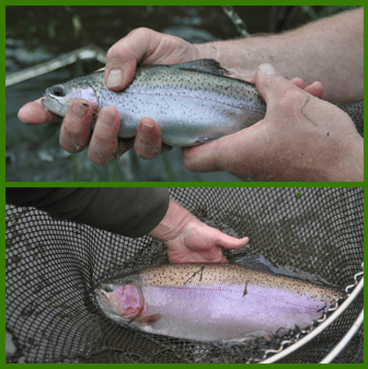 Und so sehen die Lachsforellen heute aus: gut genährt, in Regenbogenfarben und mit einem Gewicht von 3 bis 6 Kg.